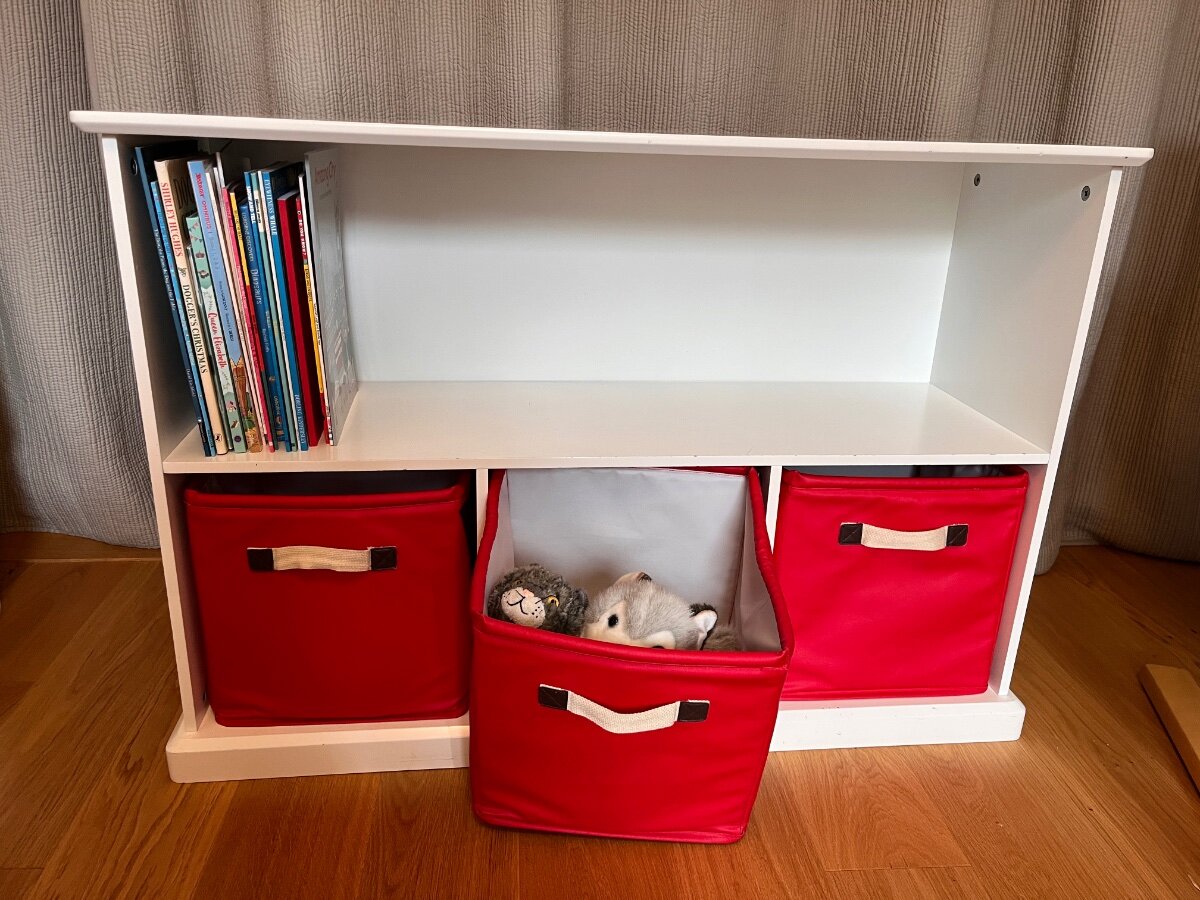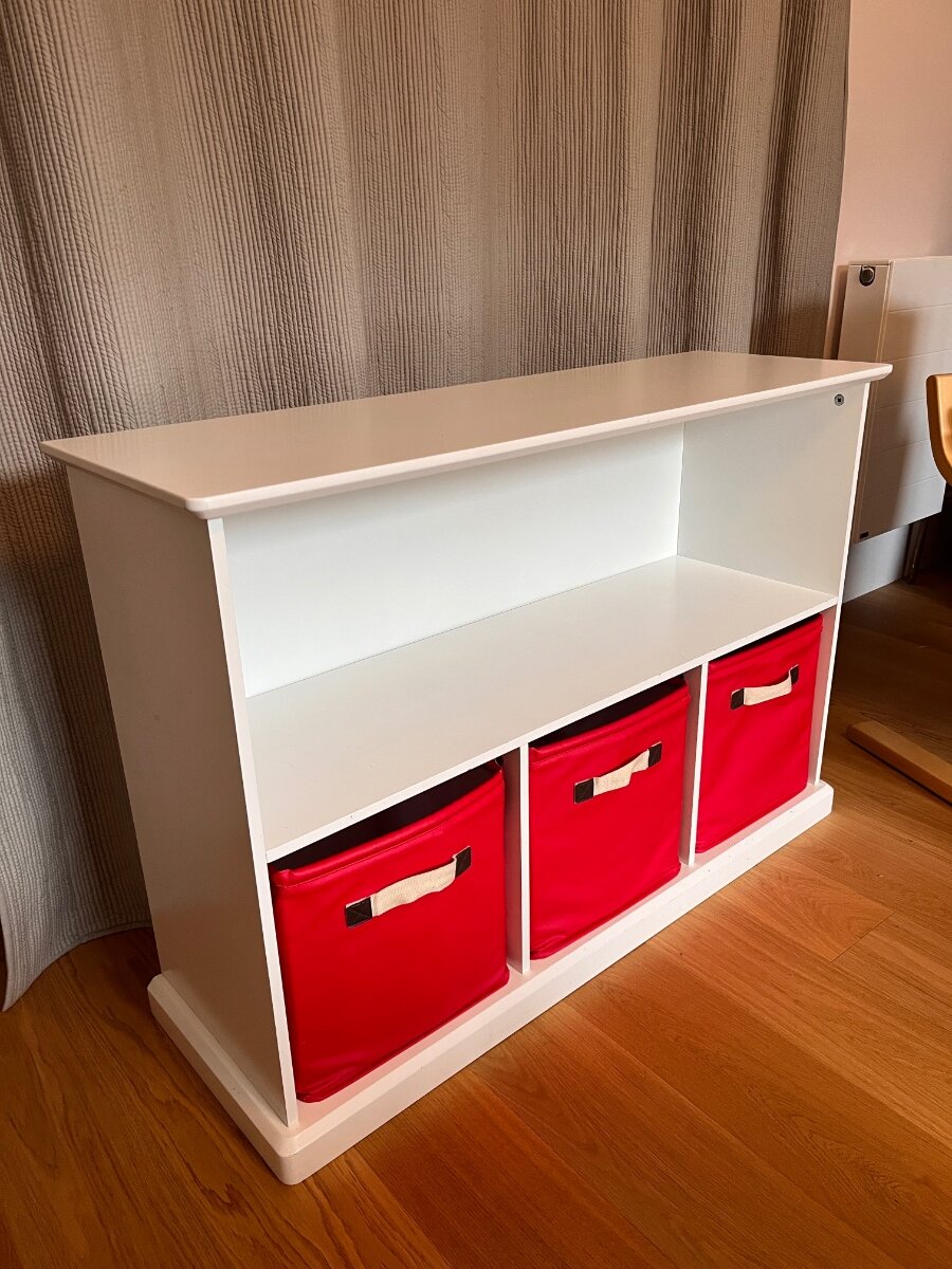 The shelf is the perfect height for picture books, and 3 storage boxes are great for tidying away soft toys/dressing up/nappies/ train track etc etc  you can also take out the boxes for extra shelf space.