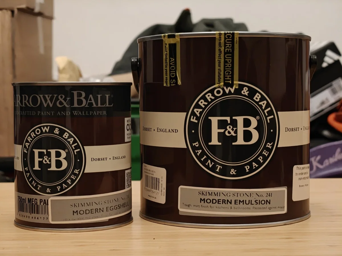 New. Unopened. Farrow & Ball No241 Skimming Stone 2.5L MODERN Emulsion + 750ml MODERN eggshell £65 for both (£63 + £35.50 retail)