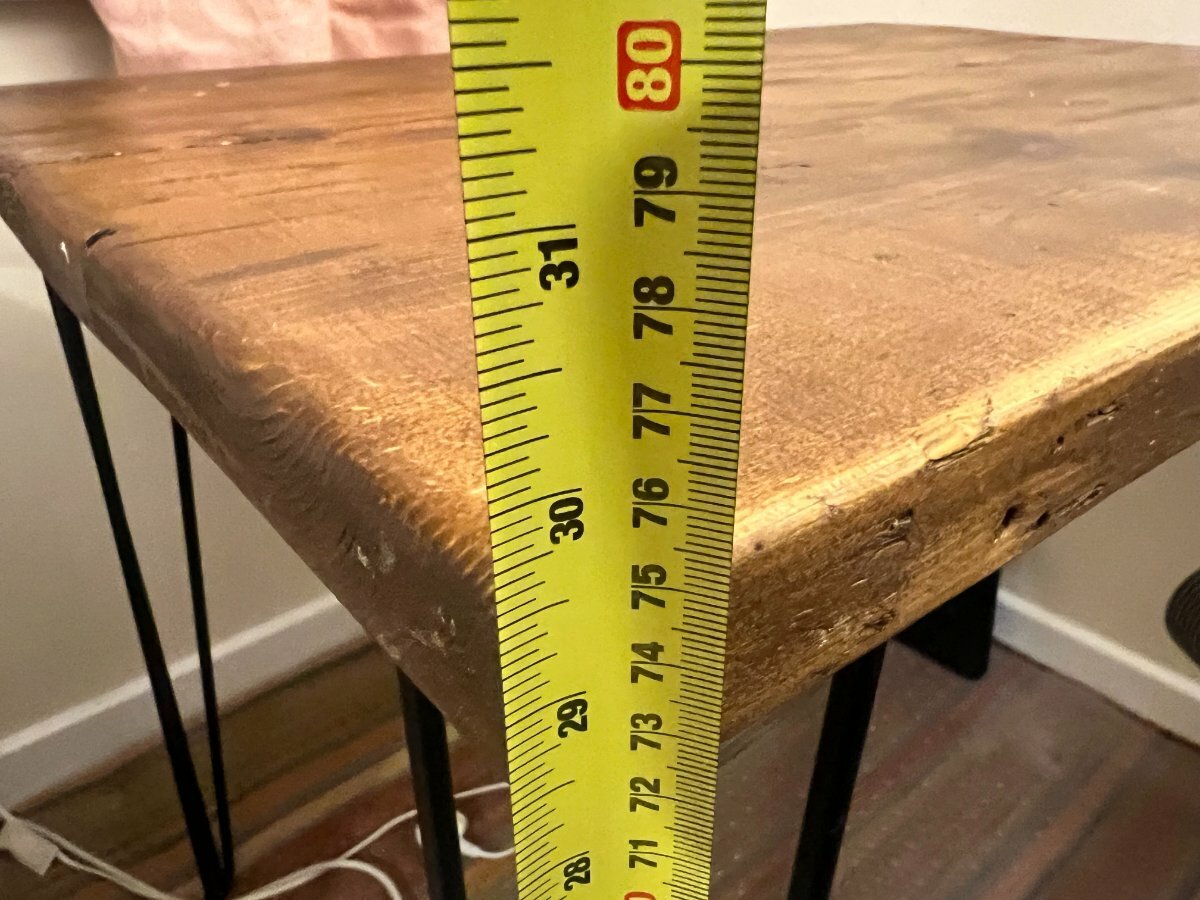DougieW Posted 3 hours ago Share Posted 3 hours ago Giving away a sturdy wooden desk/table with a waxed wood surface and black hairpin legs. It’s been used for crafts, so it shows some wear, but it’s still a really solid, usable surface — perfect for creative projects, a workshop, or a home office where character matters more than perfection. Details: Waxed wood surface Hairpin metal legs Used for crafts, so some visible wear A few small holes in the surface where it was previously drilled into (see photos) Structurally sound and stable Measurements (all rounded to the nearest cm): Height: 75cm Width: 65cm Length: 90cm Free — first come, first served. Must be collected by Friday. 📍 Collection from [POSTCODE], East Dulwich 🚫 No delivery – collection only Message if interested and able to collect. Link to comment https://www.eastdulwichforum.co.uk/topic/372353-free-desk-%E2%80%93-solid-wood-with-hairpin-legs-east-dulwich/ Share on other sites More sharing options...