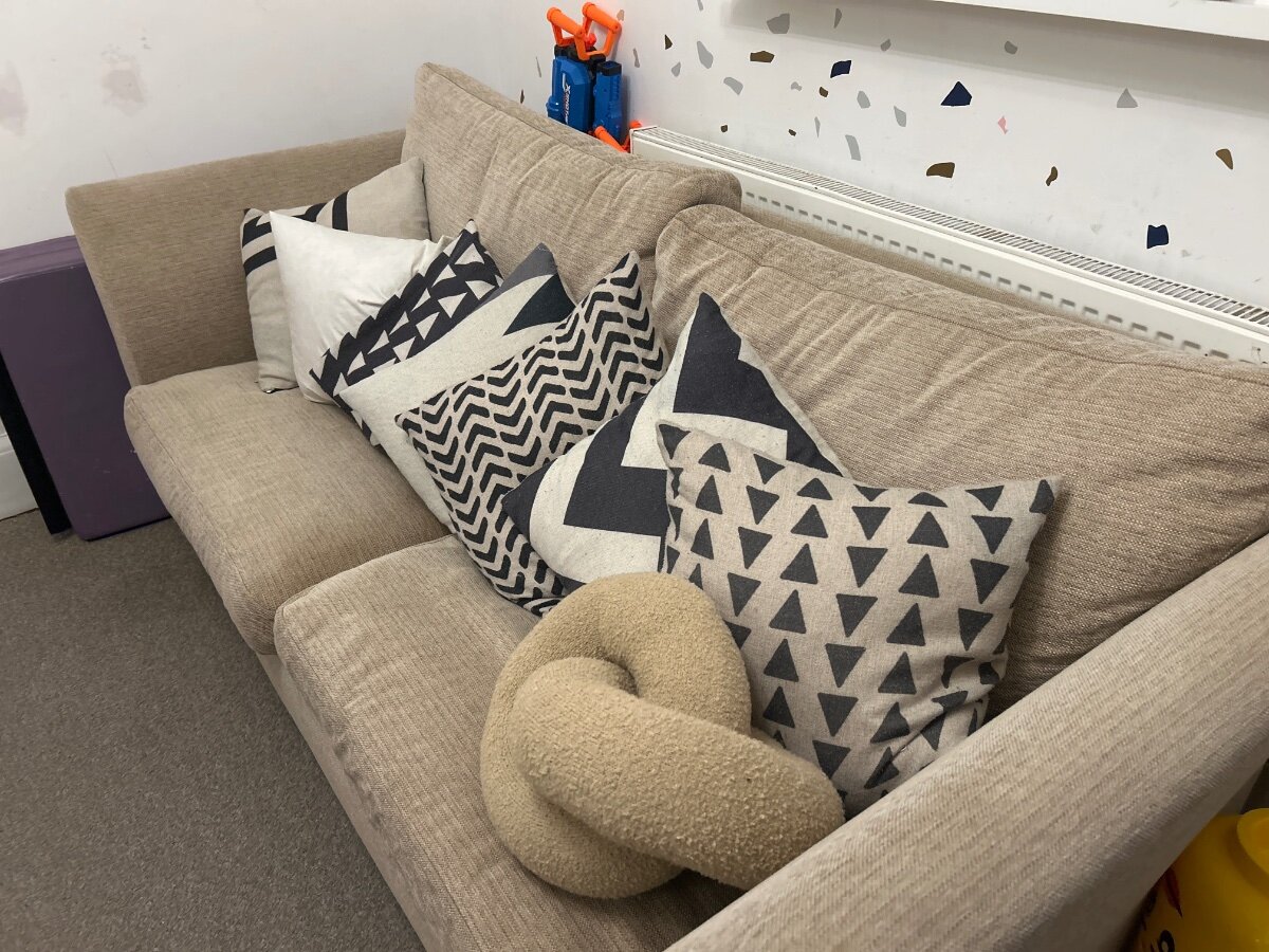 Excellent condition - no stains or pulls in fabric despite being a few years old. Mattress v clean as barely used & always with mattress protector. Covers can be removed for washing - no stains or tears or pulls - fabric is in really good shape. Pulls out into comfy double sofa bed. Originally paid £1,800 from John Lewis. Collection East Dulwich area - it’s very heavy and very solid piece of furniture so needs 2 people and a van. No pets and smoke free household. Measurements 79” x 38” deep x 30” high. 91 inches when mattress is pulled out, though the final leg which stands on the floor is about 14 inches less than that so you can for example, pull it out next to a fireplace / hearth and have the actual mattress overhang, if the space is right. Can send loads more photos over email / WhatsApp