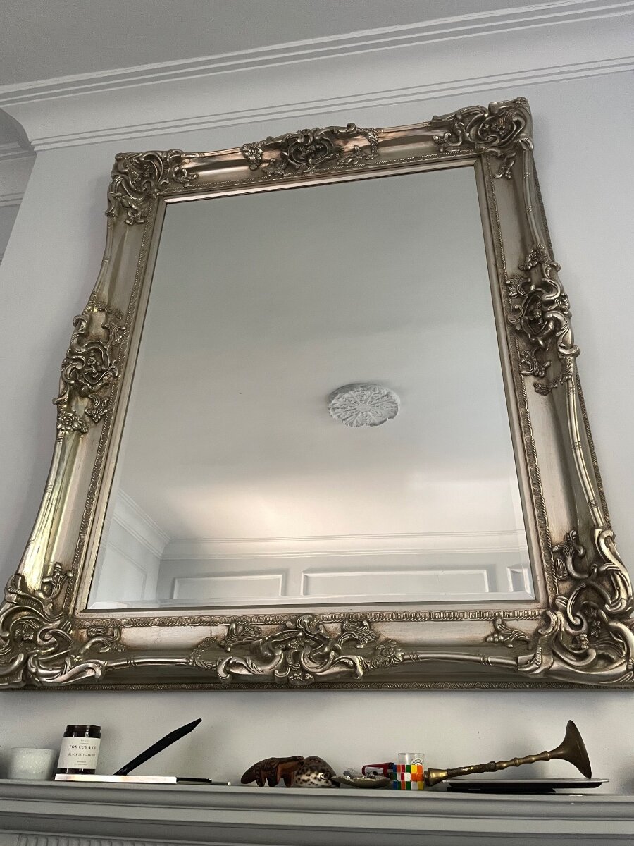 Large ornate mirror for sale - currently hanging above a fireplace but could also lean against a wall. Looking for £200