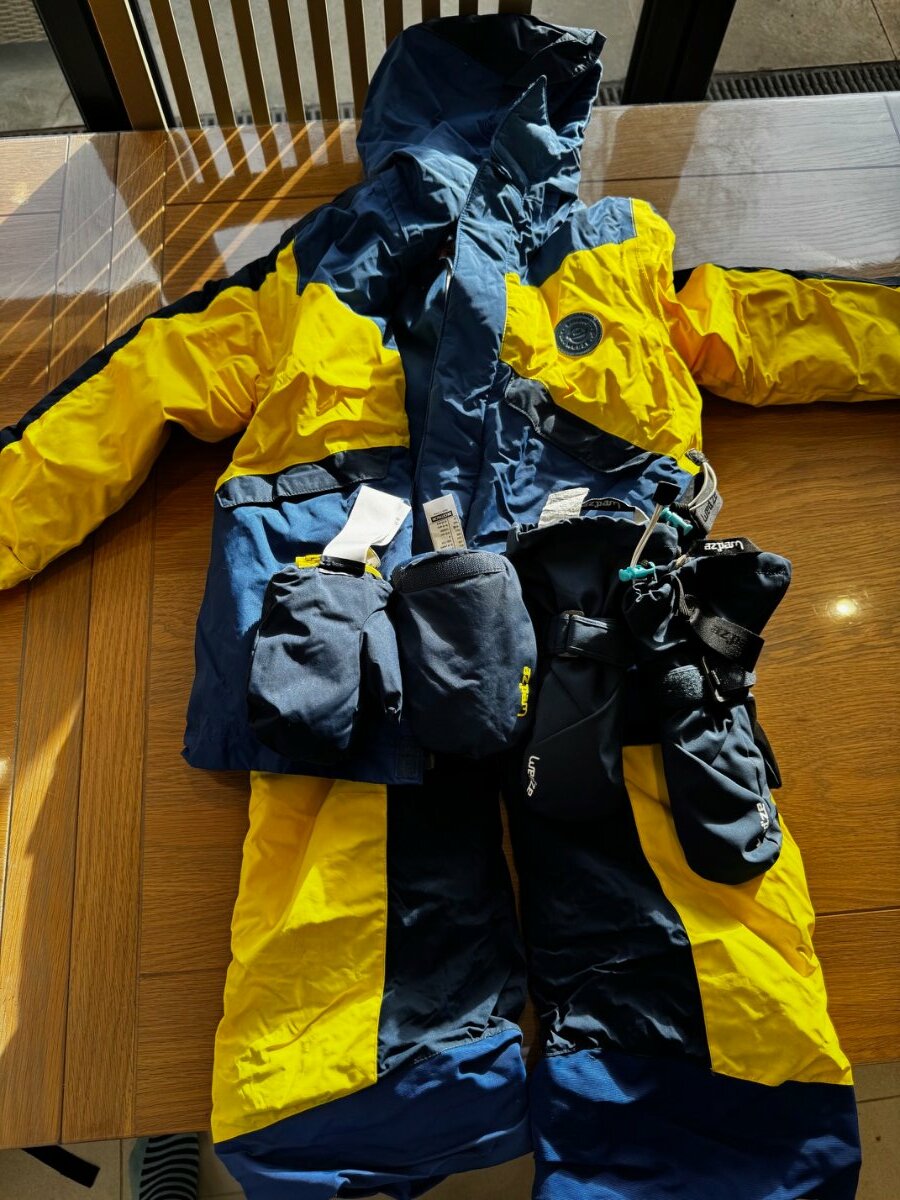 Boys Blue and yellow ski suit (jacket and trousers) Age 5/6 including 2 thermal tops and 2 pair gloves - £25