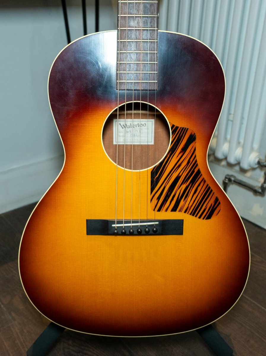 flatfifth Posted February 3 Share Posted February 3 I've got two very nice guitars for sale! First is a Waterloo WL-14L, a ladder-braced parlor guitar. These are modeled after the Kalamazoo acoustics from the early 1900's that Robert Johnson would have played. This is a great instrument by a subsidiary of Collings based in Texas. This is a very early model that does not have a truss rod in the neck, it's action is great currently. It has a K&K pure pickup installed, and includes the original hardshell case and the K&K preamp. There is very minor damage on the body, the worst of which is a small ding I've included a photo of. I'm asking £2500 The second guitar is an Eastman PG-1. These are fantastic guitars designed by the incredible luthier Claudio Pagelli and built by Eastman. The guitar I own is a one-off that was built entirely from flamed maple. This guitar has had some work done on it to fix a grounding issue these had from the factory. This guitar has more wear and tear as I've gigged with it for 7 years or so now. There are a couple nicks in the finish, the worst of which comes from a previous owner who installed the taipliece incorrectly for a while which wore two small kinks in the binding. These don't affect the guitars structure at all and are not noticeable unless you know where to look for them, I've included a picture for reference. This guitar includes the original hardshell case. I'm asking £1800. I live right off of Lordship Lane, near the Bishop if you'd like to come by and check either of these out. I'm not currently interested in any trades. Please let me know if you have any questions. Link to comment https://www.eastdulwichforum.co.uk/topic/373298-waterloo-wl-14l-and-eastman-pg-1/ Share on other sites More sharing options...