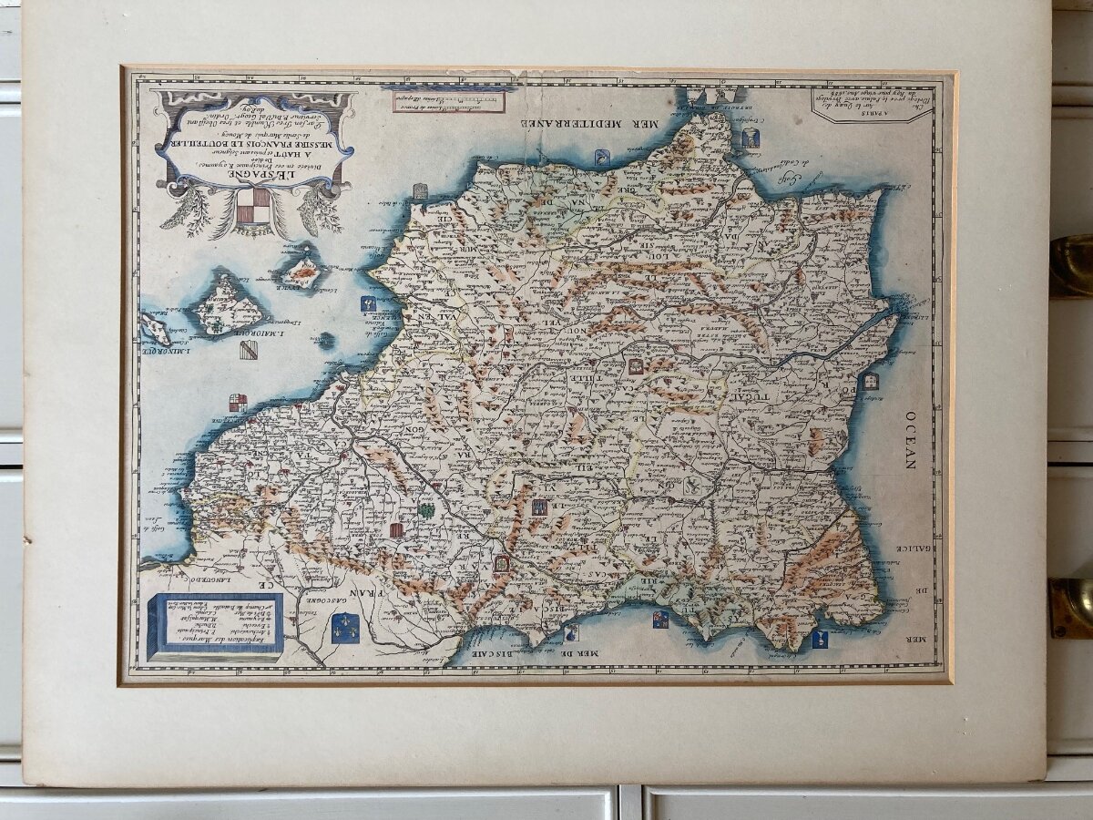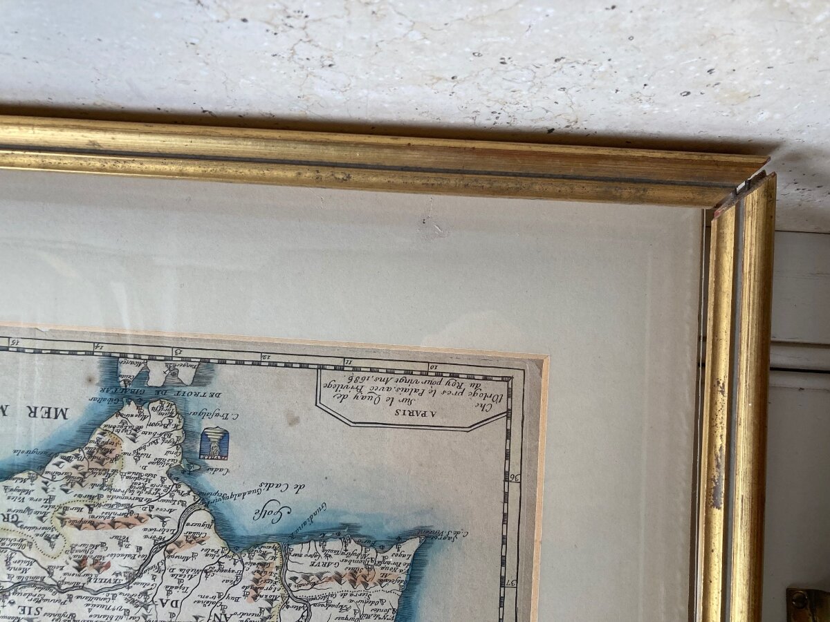 Very old restored French print of Spain C. 1686 £20