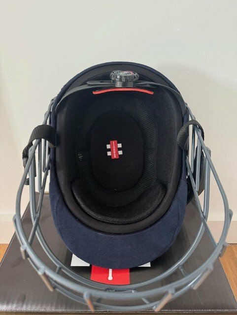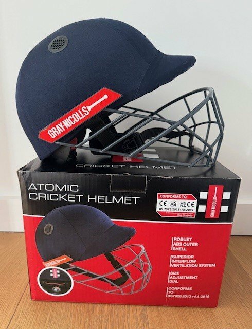 Gray Nicolls Atomic Cricket Helmet Junior Size Large, colour navy (RRP £60). Hardly ever used, in like-new condition. It comes in its original box and plastic wrapping. £40